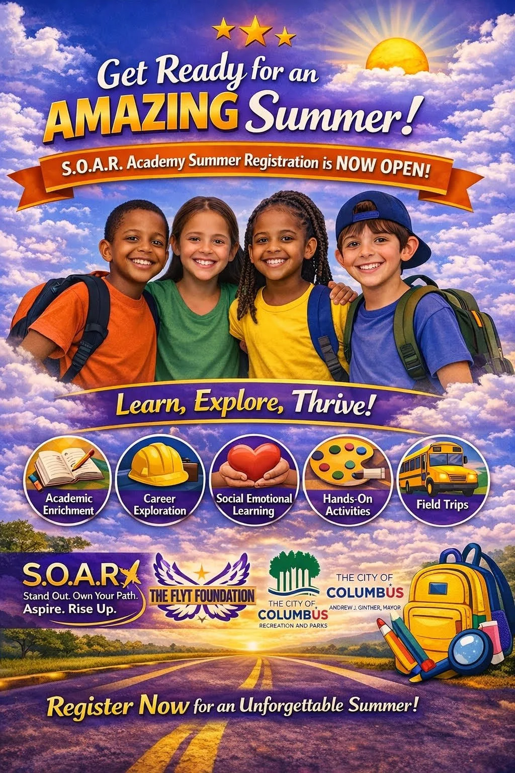 Get ready for an incredible summer of leadership, learning, and FUN! SOAR Academy officially kicks off June 8, 2026, and we are thrilled to have your camper with us!